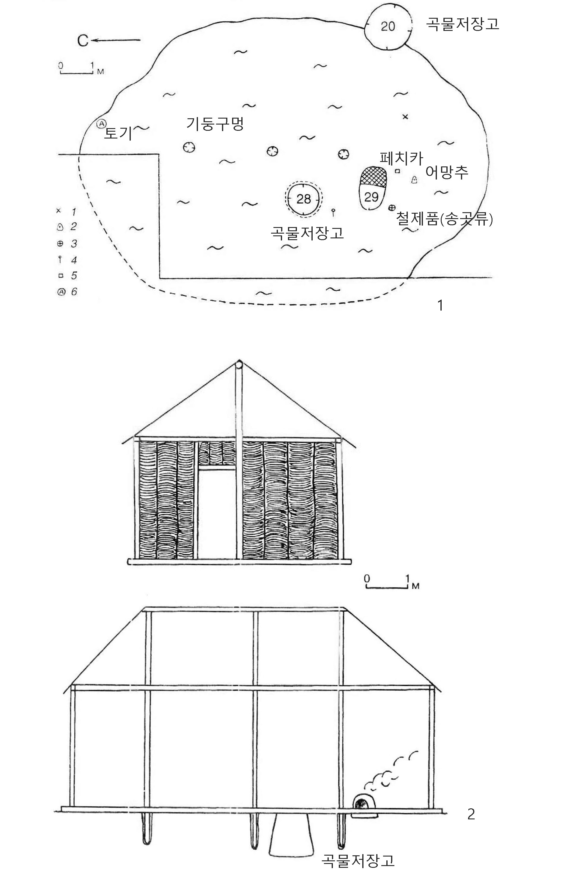 그림 2. 루보틴 유적의 17호 주거지의 구덩이와 그 복원도