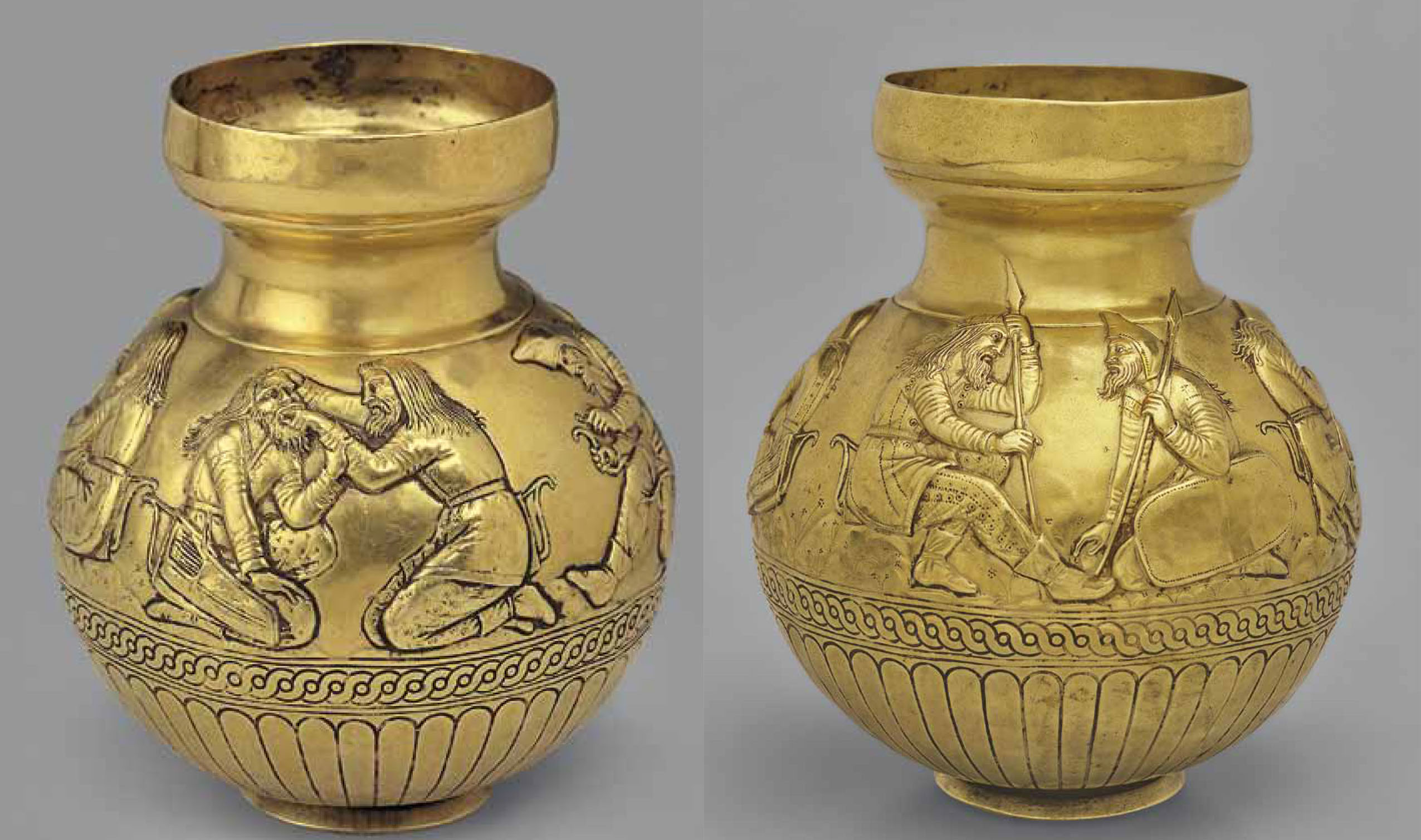 그림 2. 차스티예 쿠르간, 은 항아리, 타르기타우스(우측)와 큰 아들(좌측)