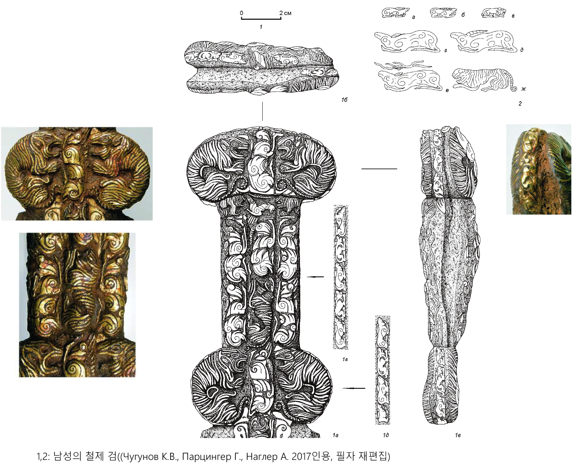 시베리아의 동물장식은 목제로 조각된 굴레장식을 많이 주목하지만 필자는 문신에 주목할 필요가 있다고 생각한다. 문신의 모든 문양은 변형되었기 때문이기도 하지만 왕이나 샤먼의 몸에 새긴 만큼 그 문양이 의미하는 바가 뚜렷할 것이기 때문이다. 몸에 남긴 문양은 최소한 시베리아 산(産)이라는데 의미가 있다.(설마 문신 새기는 장인도 어딘가에서 데려왔다가 하지는 못할 것이다...해발 2500M까지)