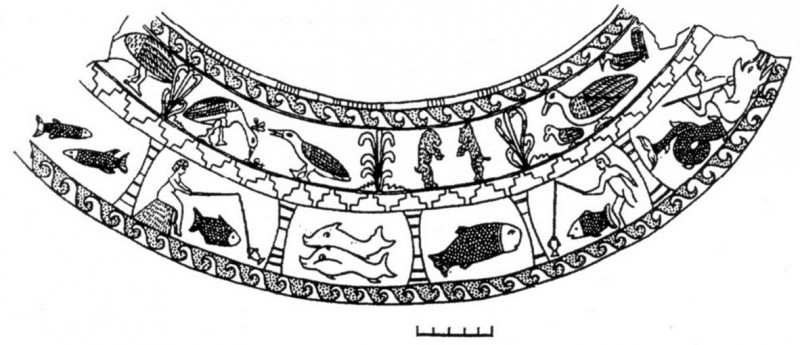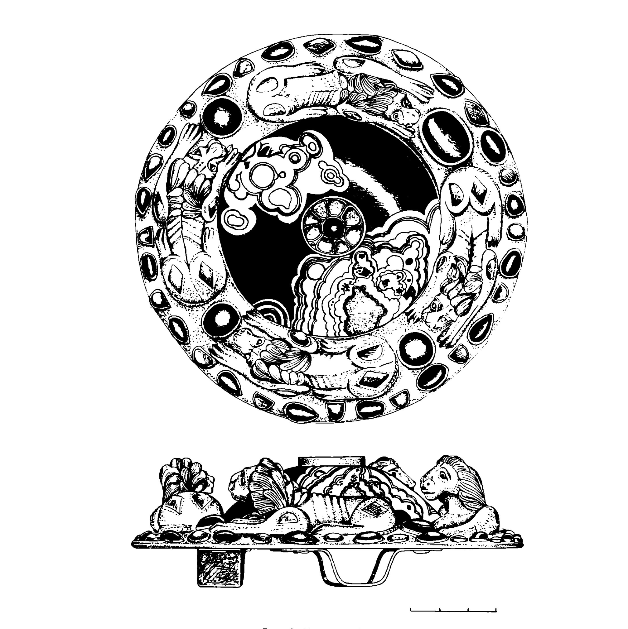 그림 1. 사드브이 유적에서 출토된 로마의 은제 그릇의 내부, 네레이스(바다의 님프)와 켄타우로스