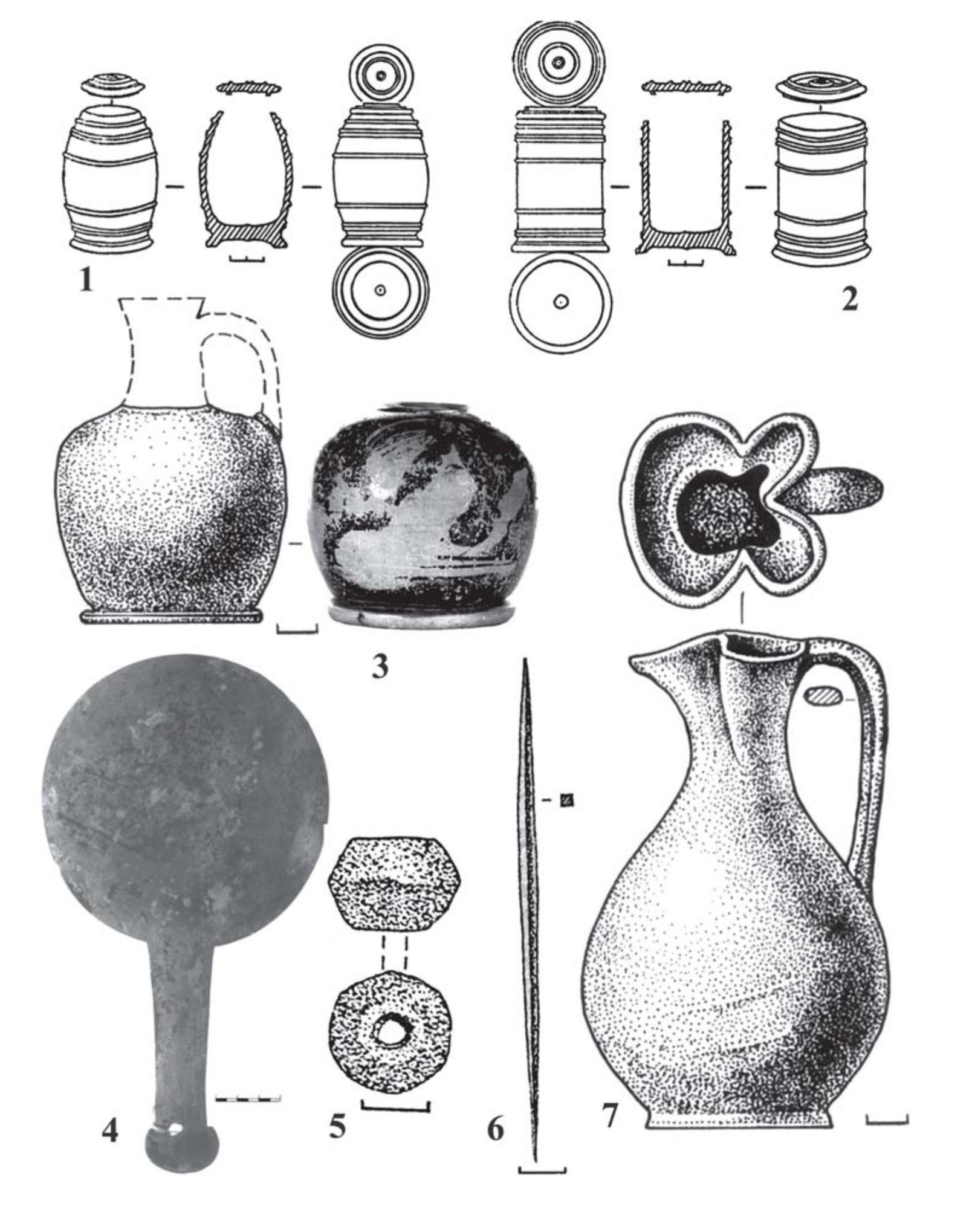 그런데 그림이 그려져 있는 상자에는 여성만 그려진 것이 아니라 그 외곽에는 네모난 칸을 그려 넣었다. 사실 이것은 스키타이 무덤 오구즈 유적에서 나온 상자(그림 3)를 참고로 할 수 있다(피알코, 불리크 1986). 이 상자에는 뼈로 된 네모난 장식판을 붙여서 장식했다. 질로니예 2유적의 유물(그림 2-1)도 스키타이 나무상자들처럼 골제 장식판을 흉내 낸 것일 수 있다. 그렇기 때문에 여성이 그려진 상자(그림 2-1)은 스키타이 사람 뿐만 아니라 그리스 사람들도 썻던 것으로 생각해 볼 수 있다.