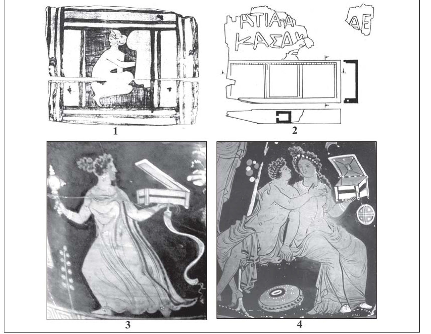 그림 2. 기원전 4세기경 나무상자. 1~2. 불가코보 마을의 쿠르간 2호 내부의 5호묘에서 출토. 3. 에르미타주 박물관 소장. 4. 푸시킨 박물관 소장