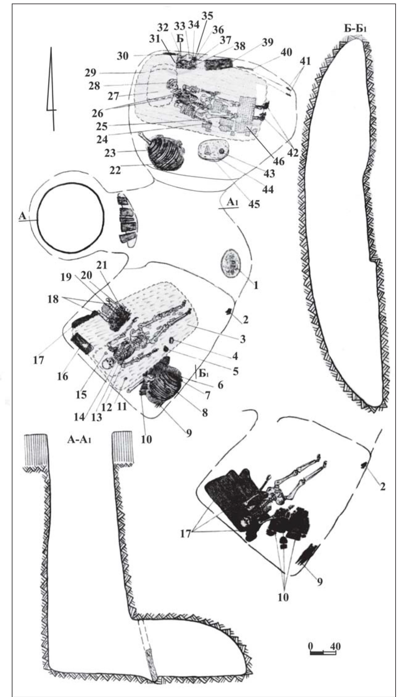 북쪽에 매장된 여성(21~35세 가량)은 매우 다양한 유물과 함께 부장되었는데 그 중에서 기원전 5세기에는 없던 물건이 있다. 나무 상자인데, 비슷한 시기의 다른 스키타이 무덤에서 나온 유물보다 크다.