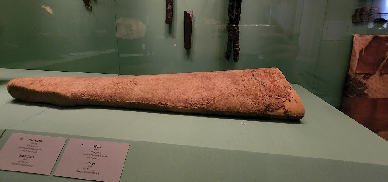 페르시아의 페르세폴리스 아파다나 궁전에서 스키타이 외교사절단이 조공하는 장면이 있는데, 긴 옷과 펠트로 된 스타킹이 분명하게 표현되었다. 외교사절단이 들고 갈 만큼 펠트 스타킹은 중요한 특산품이다. 알타이 유적을 발굴한 루덴코와 폴로스막은 이 부분을 정확하게 지적했다. 또 이들도 발목에 끈을 묶은 낮은 신발을 신고 있다. 궁전의 벽화에 있는 각 국의 사절단의 얼굴은 모두 서아시아인이기 때문에 얼굴의 형태는 참고 대상이 아니다.