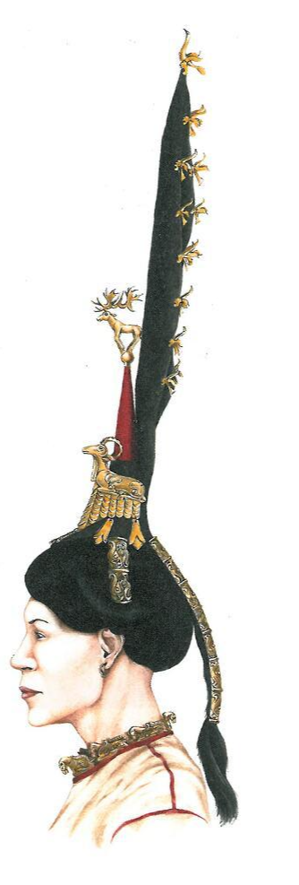다시 파지리크 유적으로 돌아가서 파지리크 2호에는 남녀가 매우 특이한 모자 혹은 머리장식이 발견되었다. 변형된 동물이 장식된 것은 남성, 원통형 머리장식 끝에 말총이 달린 것으로 매우 유니크 하다.