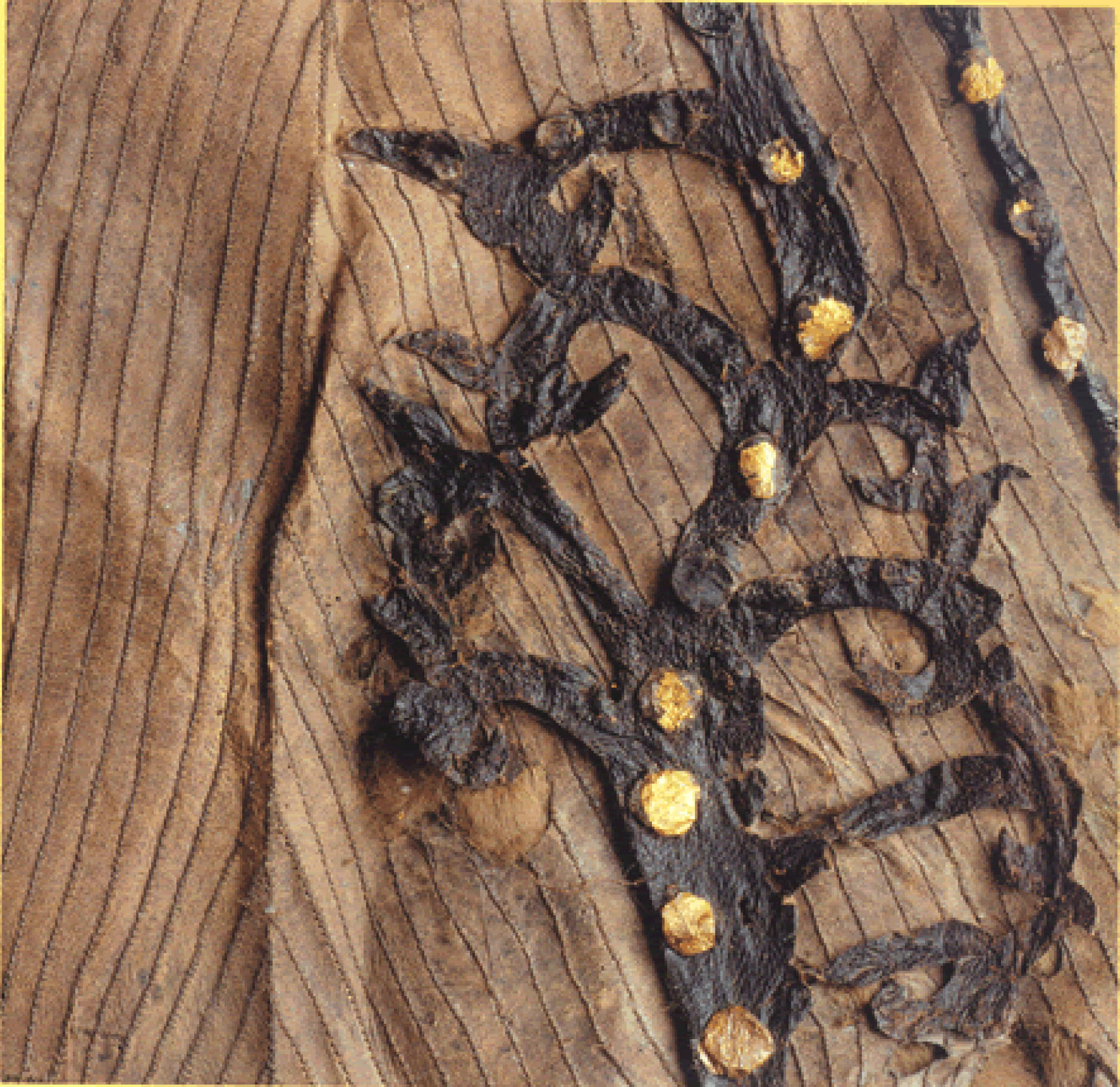 아플리케 장식을 덧붙인 것은 쿠트르군타스 유적에서도 발견된 바 있는데, 주머니의 조각으로 보고 되었으나, 코트의 조각 일 수도 있다.