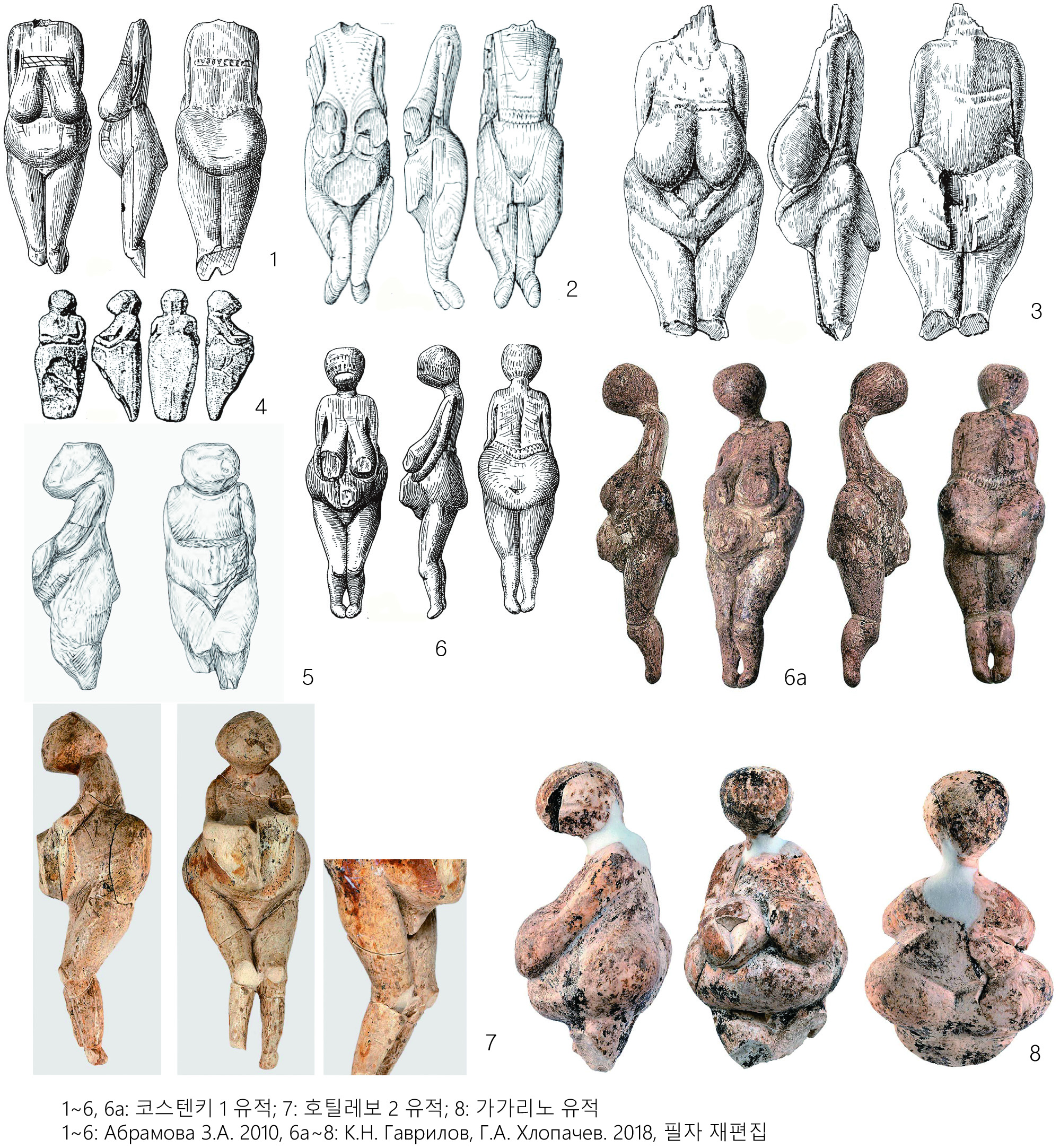 그래서 후기구석기시대부터 시베리아와 흑해지역은 인간형상물을 부장행위는 발견되지만, 부장양상은 다르다. 시베리아에서는 무덤속에서 부장되며 뼈라는 한정적 소재로 여성과 남성 형상물이 발견되지만, 흑해지역에서는 뼈와 돌로 제작되며 특정 집자리에 집중되고, 여성형상물만 제작된다.
