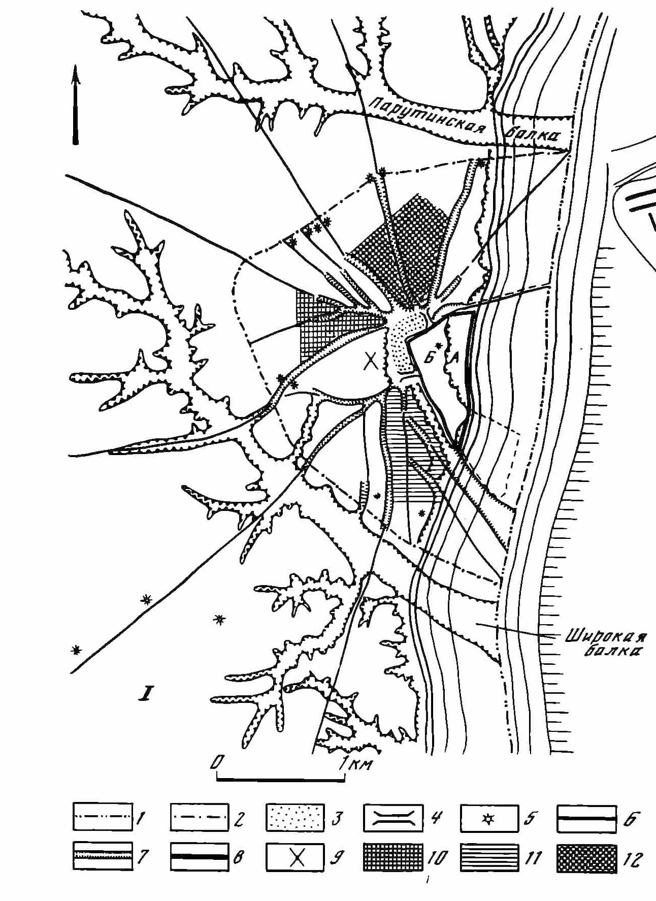 그림 1. I. 올비야의 설명 1. 도시의 경계 구역, 2. 네크로폴리스의 영역, 3. 물 저장고 4. 일종의 고대 댐, 5. 무덤, 6. 고대 도로, 7. 고대 도로의 흔적, 8. 도시의 경계, 9. 도시의 부근, 10. 고대 네크로폴리스, 11. 이른 시기의 클래식한 네크로폴리스, 12. 헬레니즘 시기의 네크로폴리스. A. 아래도시, B. 윗 도시.