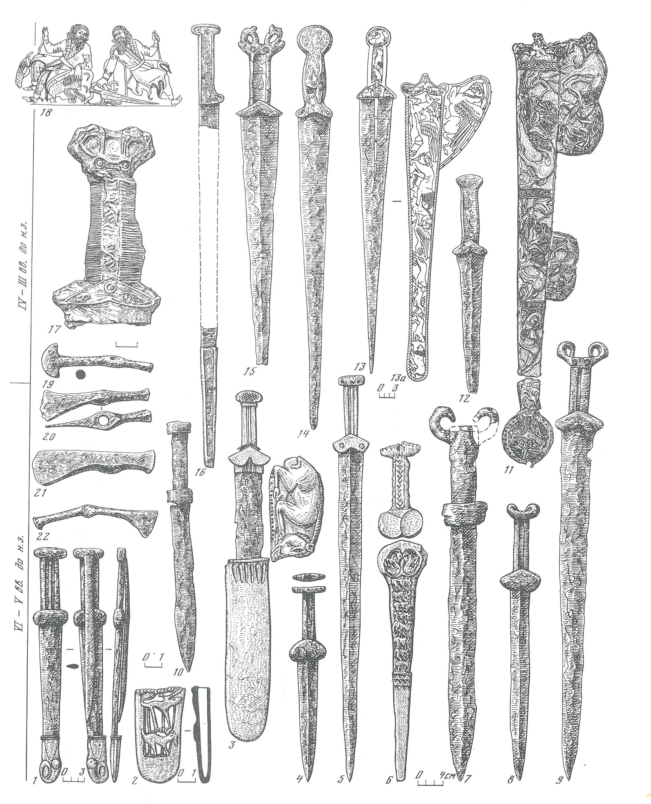 그림 4. 기원전 6~4세기 스키타이 문화(하단)와 기원전 4~3세기 사르마트 문화(상단의 검과 겁집