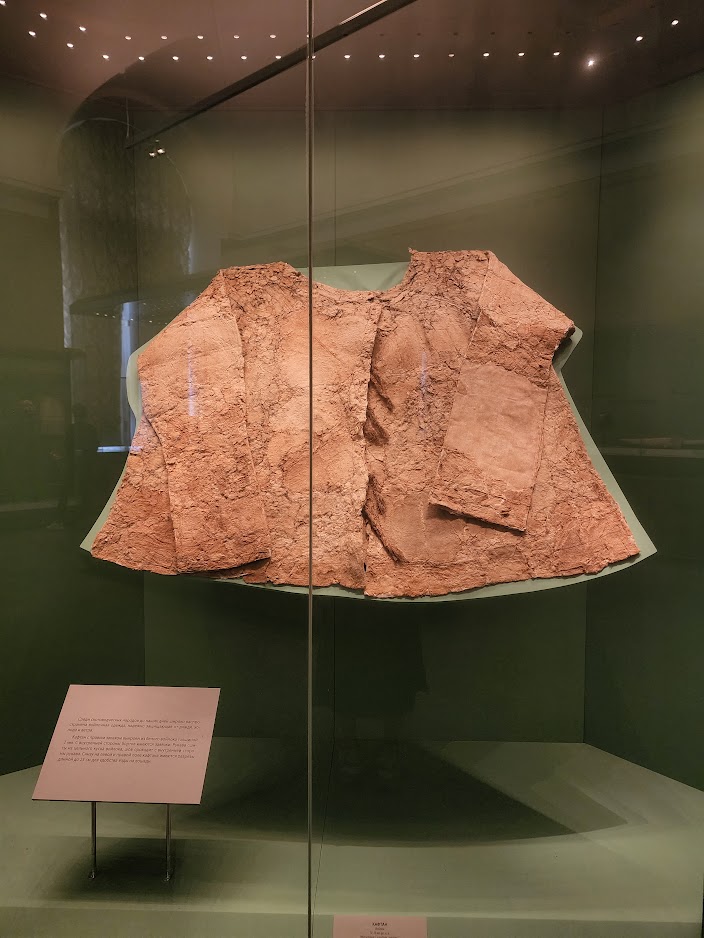 무기를 덮을 수 있을 정도로 큰 의복은 시베리아 남부 뿐만 아니라 다른 지역 유목민들 사이에 매우 인기 있었다. 사냥이나 목축 뿐만 아니라 군사작전에도 사용된 기록이 남아 있다. ‘Strategikon’은 비잔티움 제국의 황제인 Maurice(582~602년)가 남겨 놓은 군사매뉴얼인데, 이 코트에 대한 기록이 있다. 스트라테기콘에 따르면 소매가 넓은 펠트로 된 외투 또는 후드가 달린 옷이 군사들에게 제공되어야 한다고 한다. 갑옷과 활을 덮을 수 있을 만큼 커서, 우천시 혹은 이슬로 축축해지면, 갑옷과 활을 덮어서 무장을 보호하기 위해서이다. 언제라도 활을 이용할 수 있도록 하기 위해서라고 한다. 또 갑옷은 펠트 코트로 가리면 그 빛이 적에게 멀리 보이지 않고, 또한 적의 화살로부터 보호하기 때문에 필요하기 위함이다.