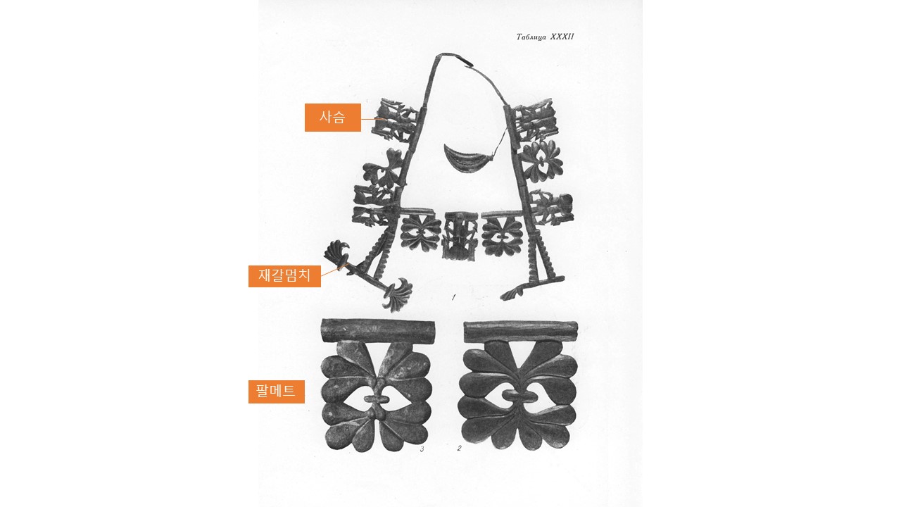 파지릭문화에서 말을 꾸미는 장신구에는 굴레장식과 안장을 덮는 안장 덮개가 있다. 2호에서도 안장덮개 조각이 나왔지만, 그 상태는 별로 좋지 않았다.