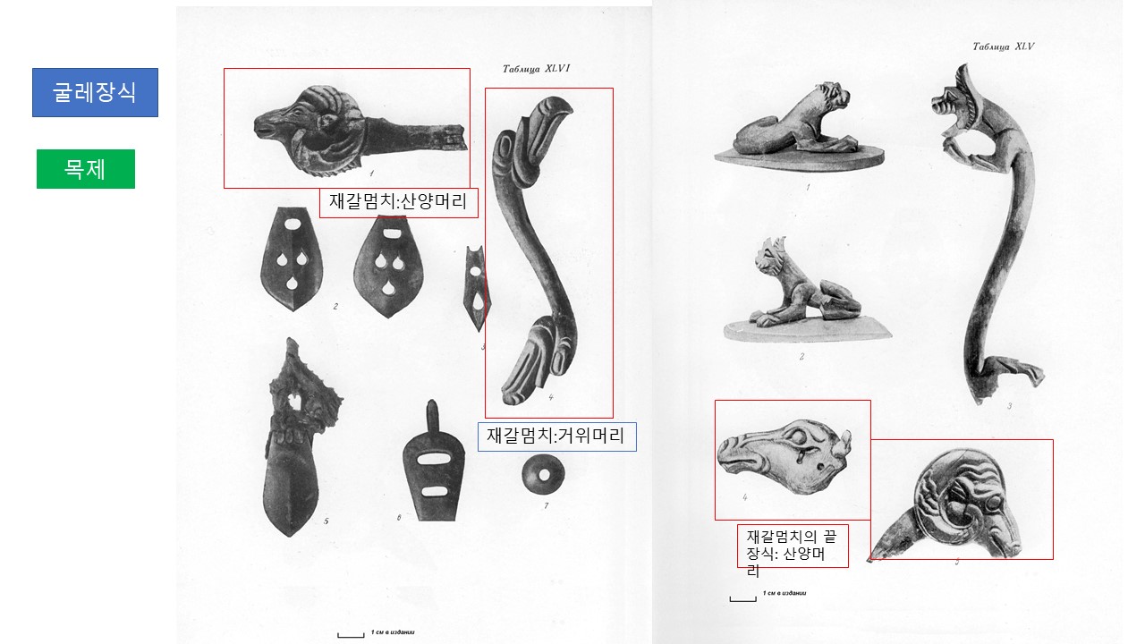 그 외에는 필자가 루덴코(1953)을 삿삿이 분석해서 조각조각 여러 군데 있는 유물을 찾은 결과 아래와 같은 마구와 말의 굴레장식이 있었다는 것을 알아내었다.