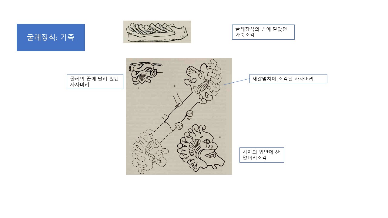 그림 4. 파지릭 유적 2호분 말의 굴레 장식: 목제 재갈멈치-동물문양장식(김재윤 편집)