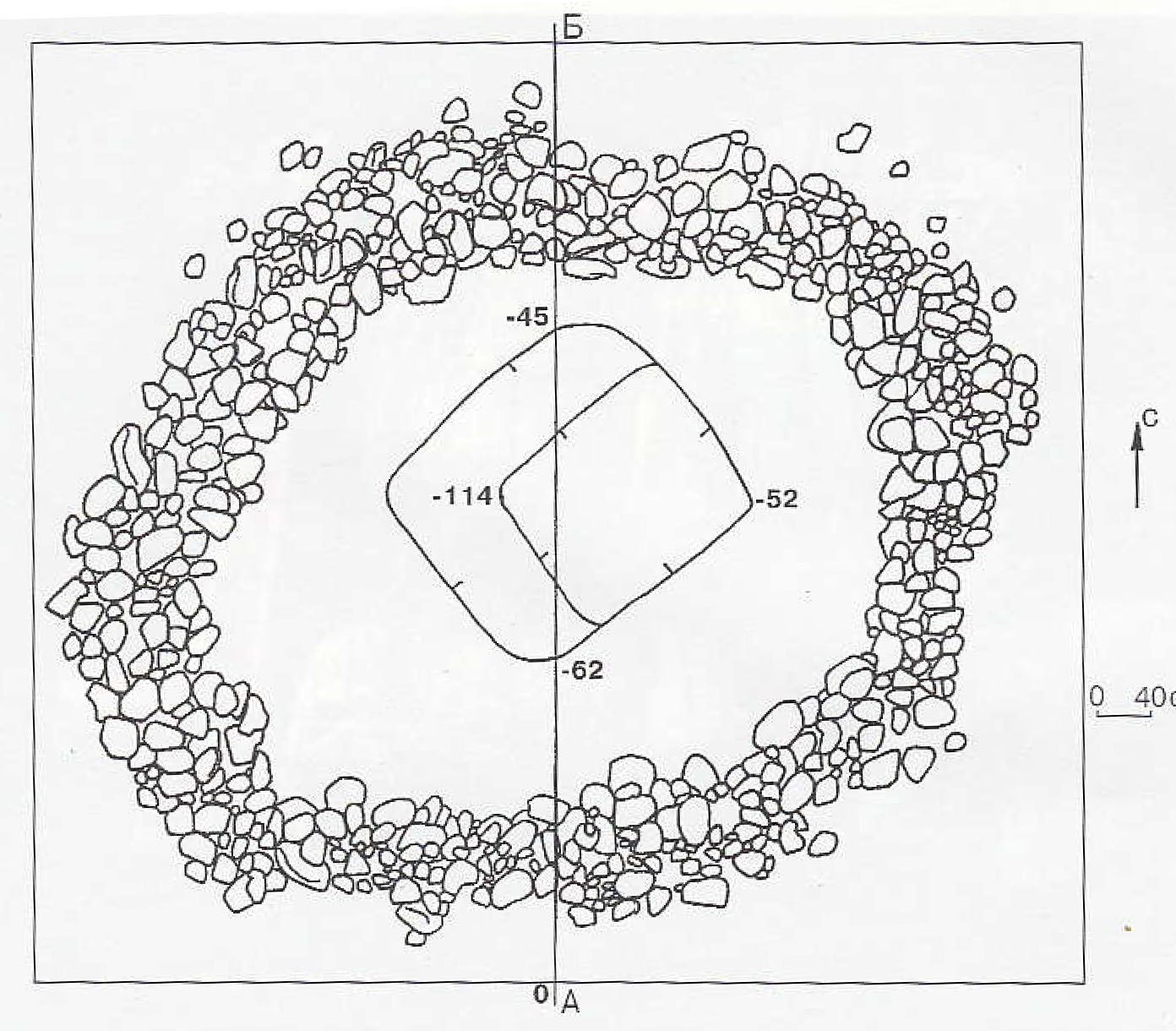 그림 3. 베르흐 칼쥔 II유적의 3호분, 적석을 들어내고 남은 호석