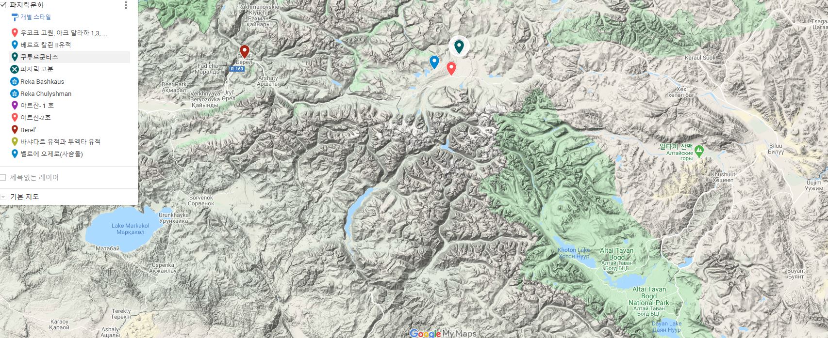 지도 1. 스키타이 문화 중 파지릭문화의 유적