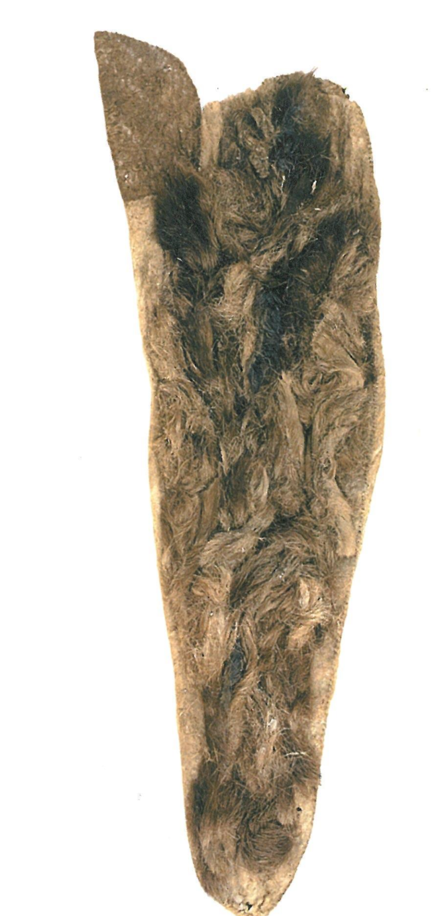 그림 2. 베르흐 칼쥔 II유적의 3호분 남성미라의 고리트(활통) 아래부위, 모피+펠트