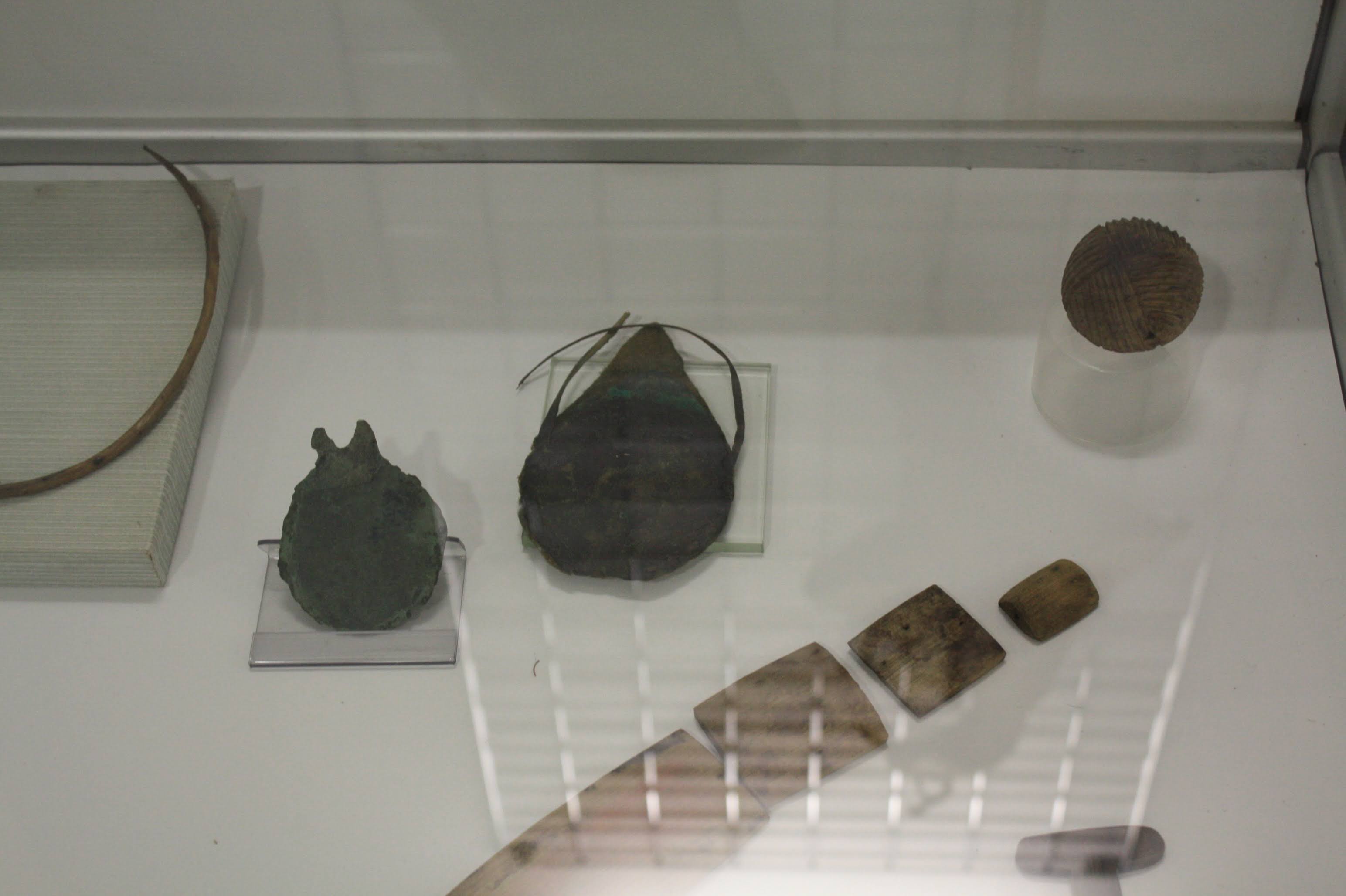 청동 거울 옆에는 뿔로 만들어진 빗(그림 4)이 확인되었다. 빗은 아르잔-2 유적에서도 출토되고, 이미 시베리아 청동기시대의 문화에서도 자주 출토되는 유물이다. 아마도 현재의 빗과는 다른 기능 혹은 다른 의미가 있었는지 모르겠다. 예를 들면 사냥도구의 일부였다던지....
