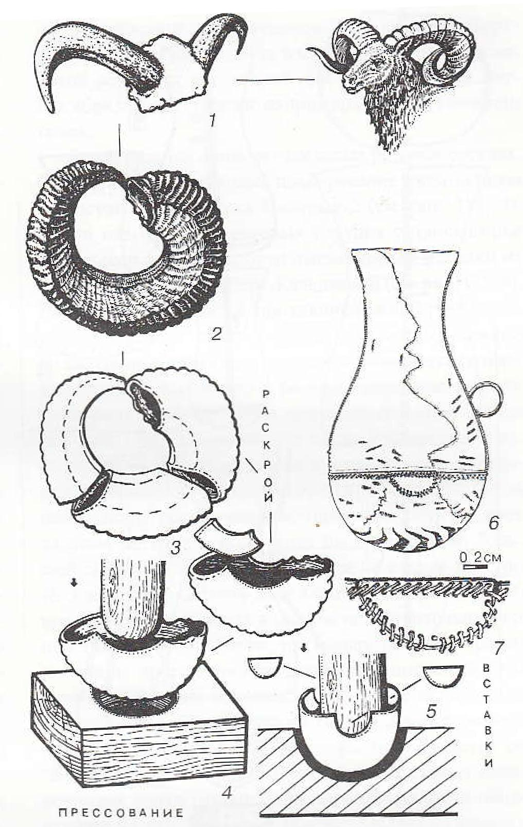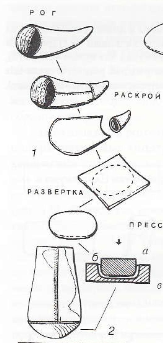 그림 4. 파지릭 문화의 뿔제 잔 만드는 방법 1, 몸통부위