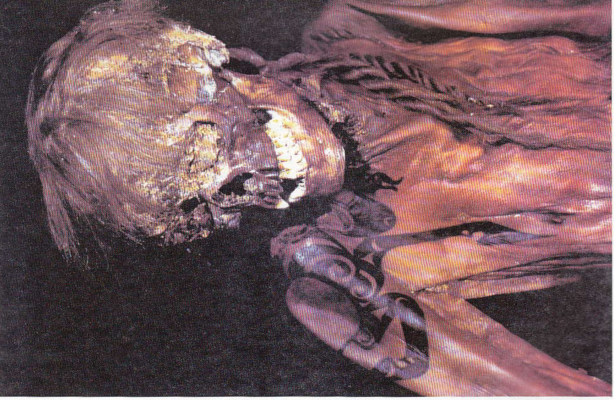 얼음공주를 분석한 고병리학자들에 따르면 미라로 제작시 방부처리와 복원하는 부분은 주로 보이는 부분에 집중되었다고 한다. 베르흐 칼쥔 II유적의 3호분 젊은 전사는 배를 가른 부위를 아주 대충 말총꼬리로 마감했다(그림 3). 이 남성은 아주 큰 모피 코트를 입고 있어서 대부분이 가려져서 이기 때문이다. 물론 남성도 미라로 만들어지고 방부처리를 할 당시에 발삼처리를 한 것은 마찬가지이다. 이 남성 전사를 보면 아크 알라하 3유적의 얼음공주를 얼마나 정성스럽게 미라로 만든 것인지 알 수 있다.