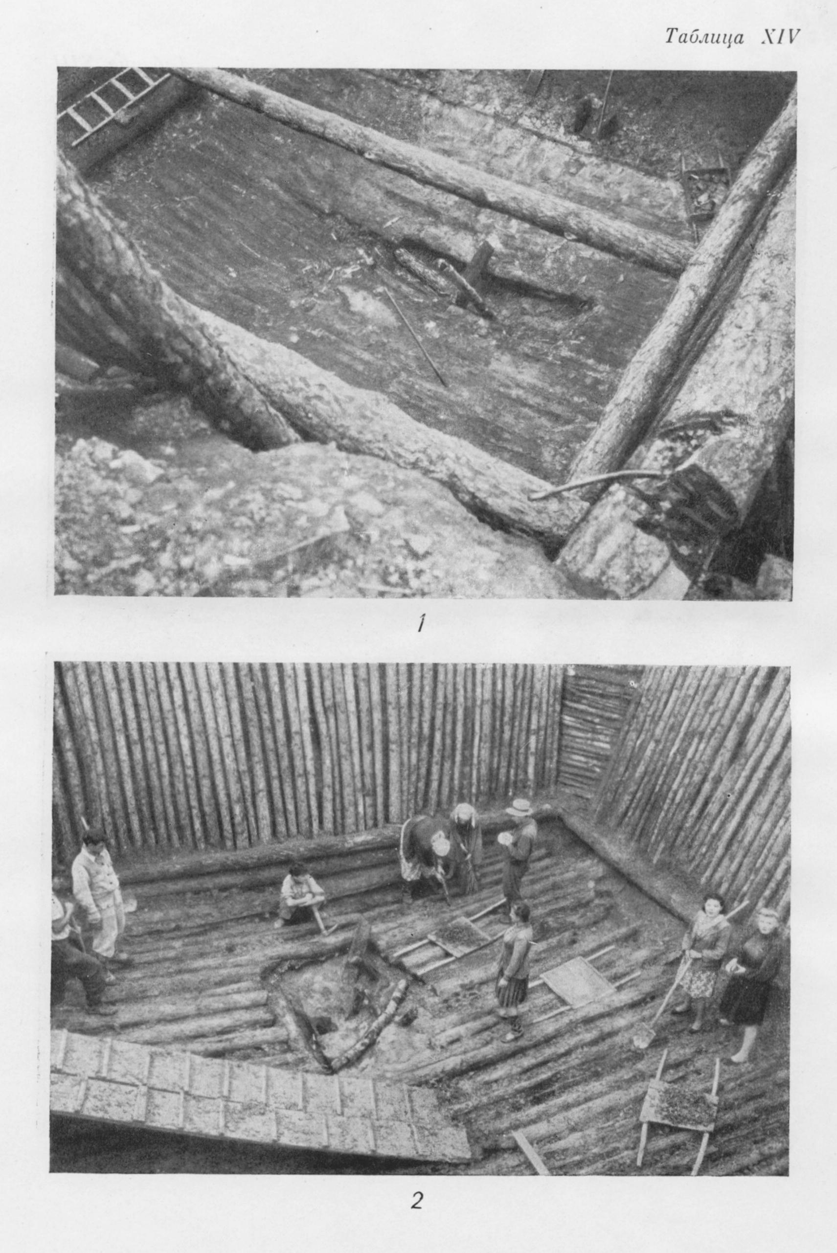 무덤구덩이(4.5×5.8m, 깊이 4.5m) 안에 무덤방(3,3×3.7m)을 만들고 그 안에 통나무관을 놓은 구조이다. 무덤구덩이 내부에서 북쪽은 말을 위한 공간이고 남쪽에 무덤방이 설치되었다(그림 8). 무덤방 외곽에는 남쪽과 북쪽에 수직으로 기둥(길이 1.48m, 직경 50cm)을 세워서 상부의 하중을 견디기 쉽게 했다. 이 위로 남북방향으로 통나무를 덮고 다시 동서방향으로 통나무 13개를 나란히 눕혀서 덮었다. 가장 상부에는 자작나무 껍질로 덮은 흔적이 발견되었다. 무덤구덩이 북쪽에는 말 8마리 분이 있었다.