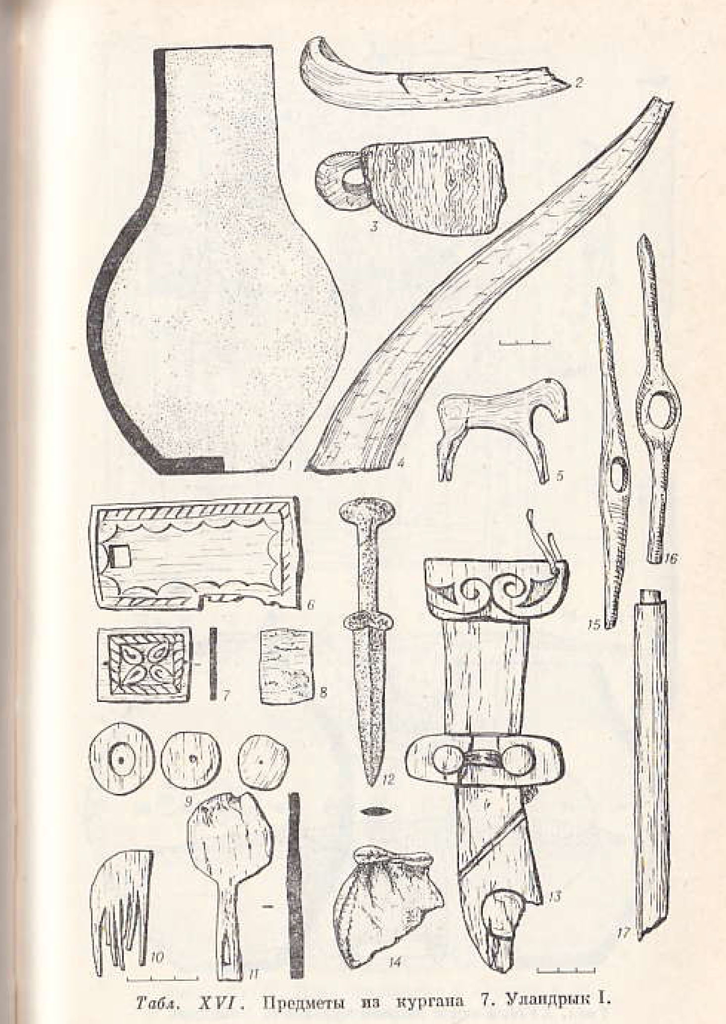 하지만 울란디르크 I유적의 무덤 가운데 '나무무덤방'(7호만 제외)을 만든 무덤은 말이 있건(9~16호) 없건(그림 1, 5), 유스티드 계곡의 무덤과 다르다.