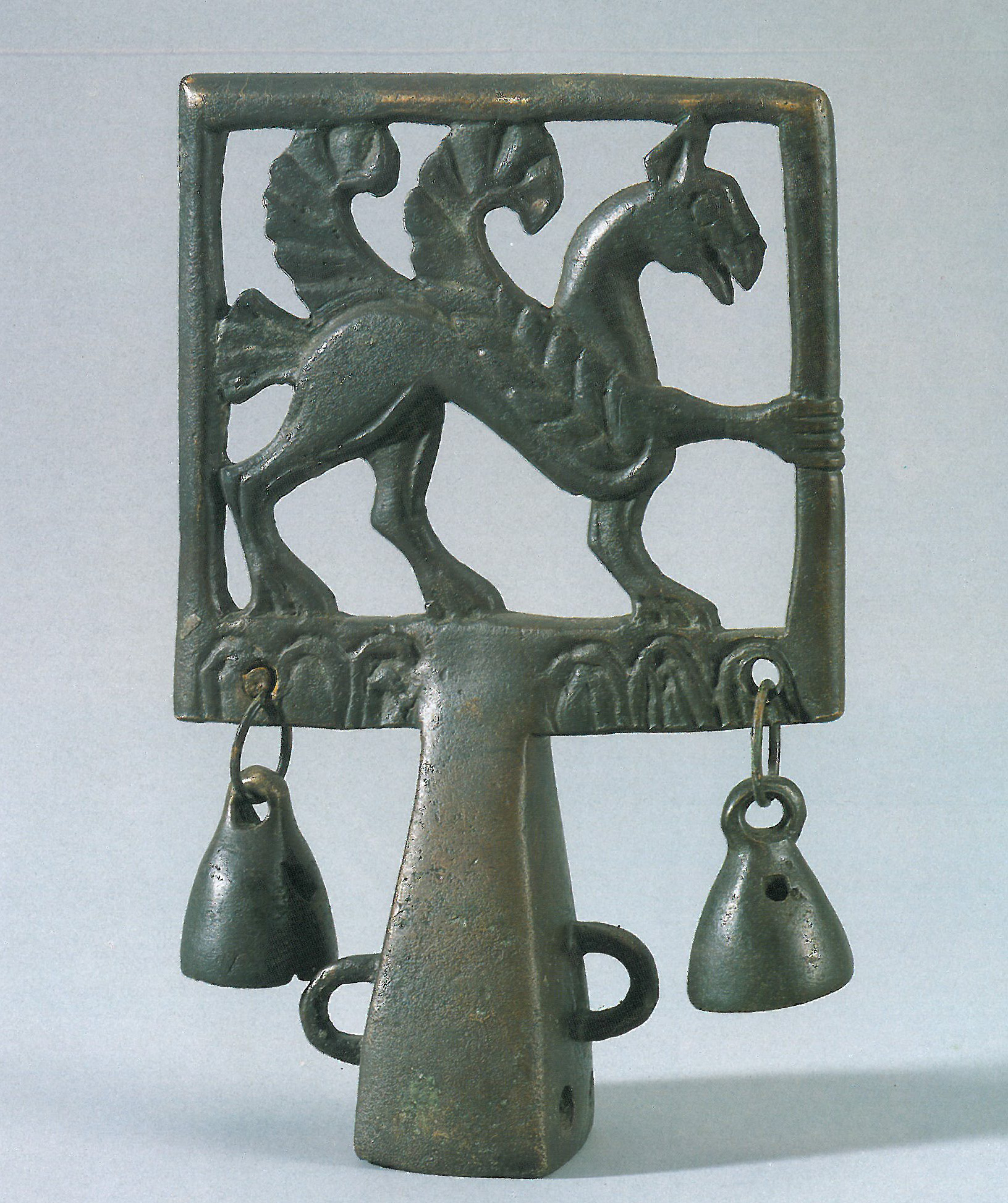 이 유물은 드레프르강 하류에서 19세기 말에 우연히 발견된 유물로 알려졌고, 다른 유물에 비해서 크기가 작다(높이 4.3cm). 알렉산드로프스키폴 유적에서 발견된 간두령처럼 방울이 작아지고 여러 개 달렸다는 점에서 기원전 4세기에 만들어졌다고 여겨진다.