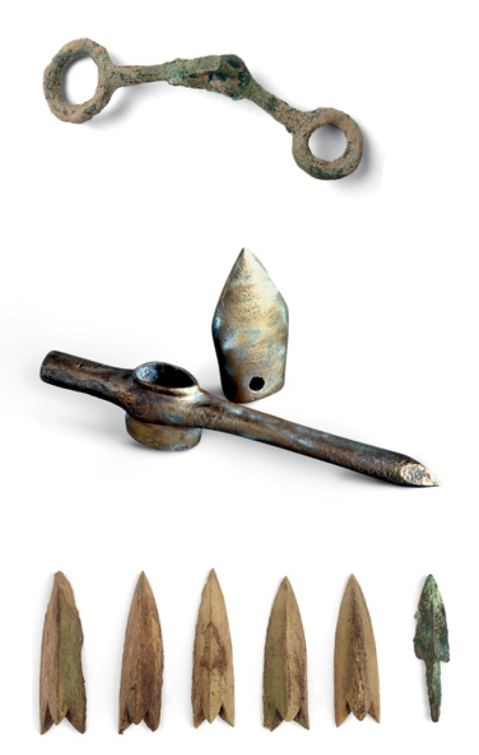 베렐 유적에서도 화살이 발견되었는데 청동과 골제 화살촉이다. 청동화살촉은 중앙에 원형의 빈곳 없이 삼각형에 가깝고 슴베 부분(자루에 끼우는 부분)이 길게 나와있다. 실릭티와 같은 유물은 막대를 화살촉 안으로 삽입하는 것이고, 베렐 유적의 화살촉은 나무 막대에 끼우도록 만들어진 것이다. 베렐 유적의 골제 화살촉은 슴베 부분이 없고 촉의 중앙이 비도록 만들어진 것이다. 기원전 7세기 중반의 아르잔-2호에서 발견된 골제 화살촉과는 다른 모습이다.