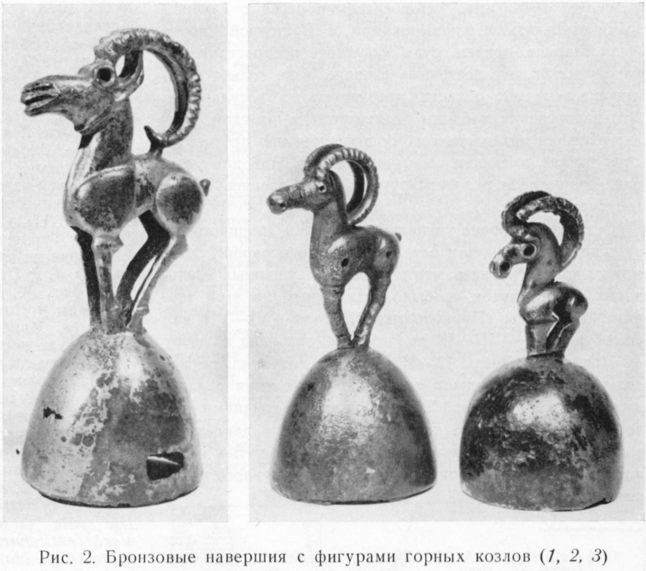 현재의 관점에서 보면 이 유물들은 주로 미누신스크 분지에서 분포하던 스키타이 문화권 가운데 타가르 문화의 산염소와 사슴모양 입상이며(그림 3,4), 타가르 문화의 이른 시기인 기원전 7세기 경의 유물이다. 이 뿐만 아니라 철제품도 있었는데, 등자와 재갈멈치(그림 5)이다. 출토된 곳은 미누신스크 분지인데, 등자를 사용하던 시기는 예니세이 키르키스 문화라고 불리는 기원후 9세기 경(자비투히나 1977)으로 보았다.