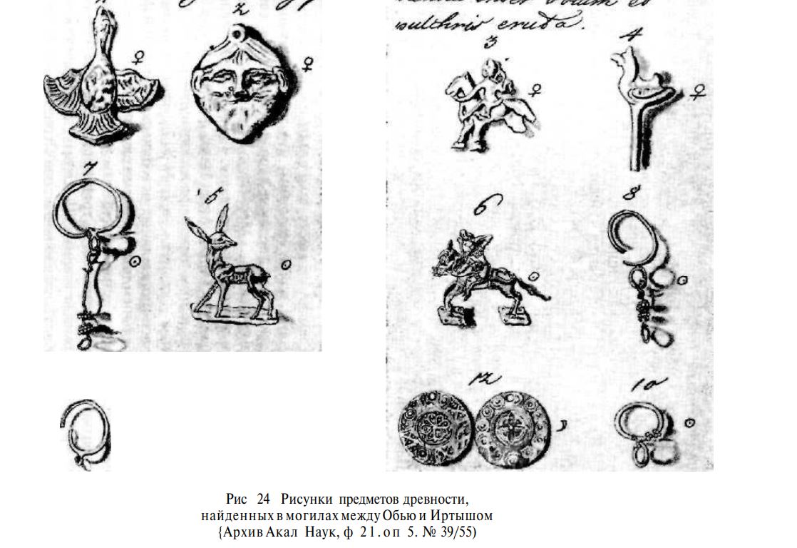 시베리아 총독 가가린이 모은 황금 유물도 있지만, 좀 더 학문적인 경로?로 모은 유물도 있는데 1734~1744년 동안 제2의 캄챠트카 대탐험 프로젝트 중에 밀러가 크라스노야르스크 지역의 유물(그림 3~5)을 모은 것도 포함된다.