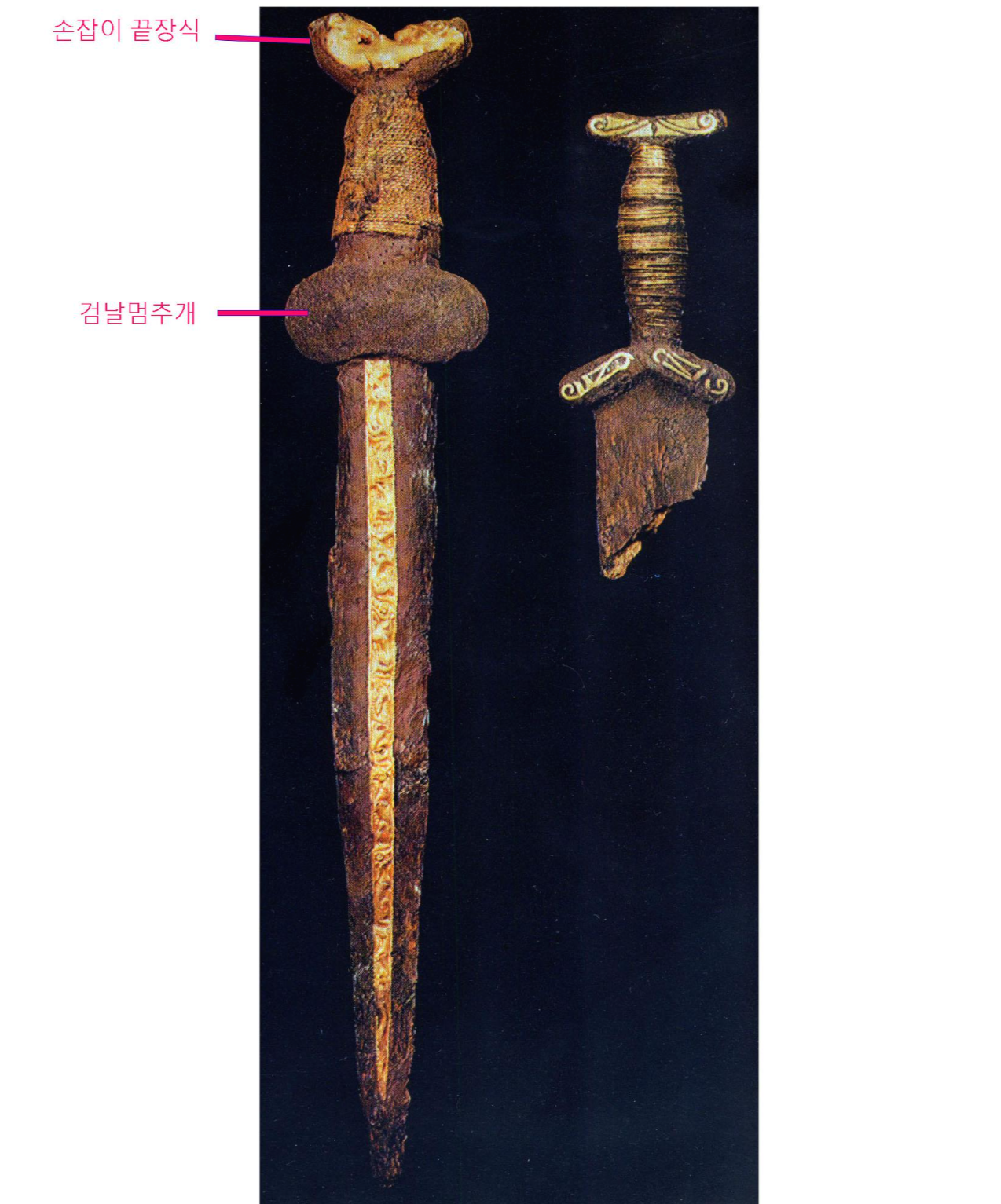 그림 2. 이식 유적의 황금인간 쿠르간에서 출토된 철제 검의 부분, 그림 1의 왼쪽과 동일