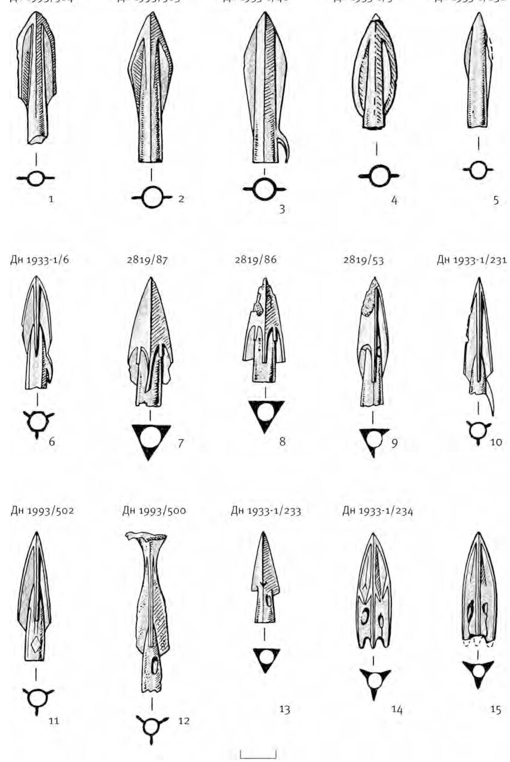 그림 2. 네미로프 성곽 유적의 청동화살촉, 기원전 7세기부터 기원전 5세기 유물까지 모두 있다.