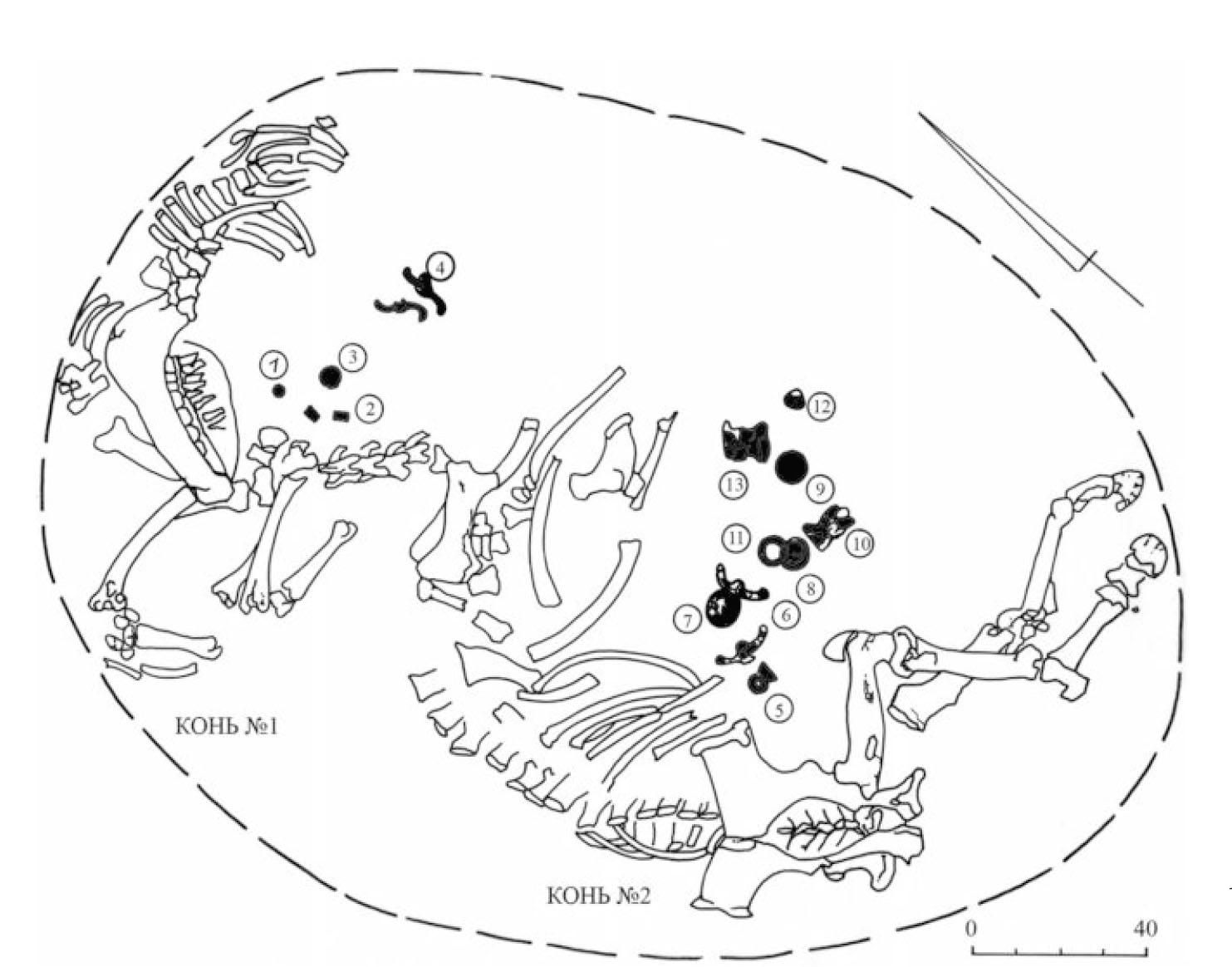 그림 4. 가이모노바 유적의 말 무덤 굴레장식