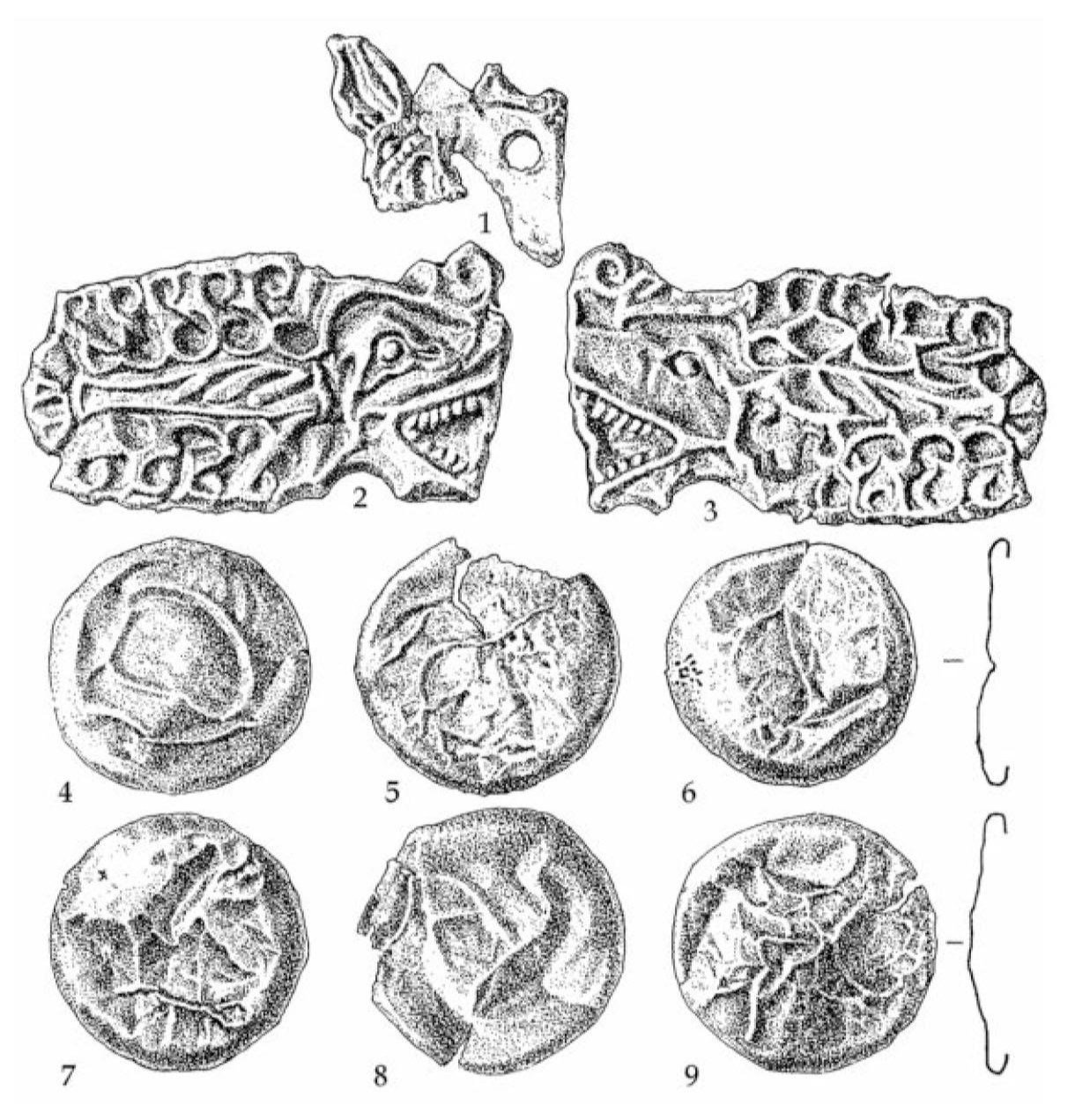 그림 5. 가이모노바 유적의 말 무덤에서 나온 굴레장식, 4.0~5.4×9.9cm