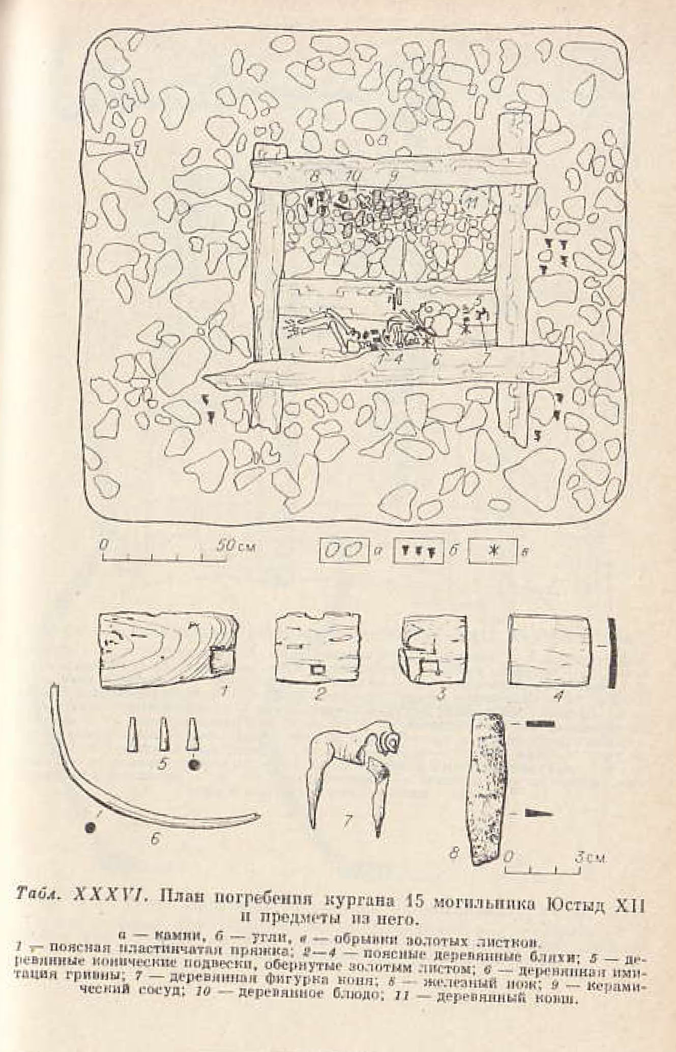 알타이에서 발견되는 남성 전사는 목걸이를 착용하고 묻힌 경우가 종종 있다. 해발 2500m 우코크 고원의 미라가 된 남성전사(그림 1), 아크 알라하-1의 1호분 45세 남성, 아크 알라하-1 유적의 2호분 소년(그림 2) 뿐만 아니라 추야강 계곡의 유스티드 XII유적 무덤에서도 발견된다.
