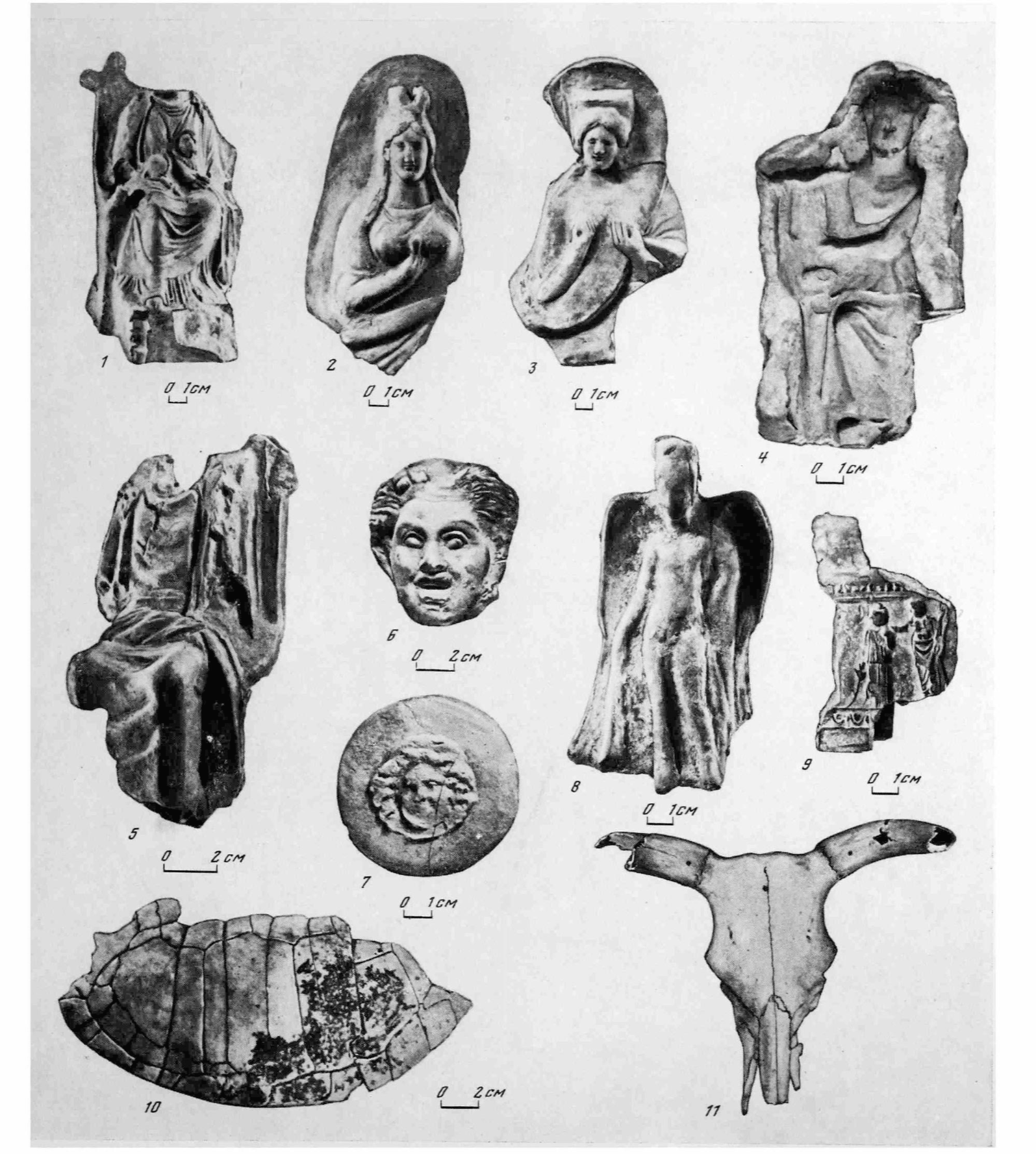 저장고에서는 그리스 신상들이 발견되었다. 흙으로 만든 것으 구운 것이다. 키벨레(그림 3-1), 아프로디테(그림 3-2), 데메테르(그림 3-3), 기원전 3세기의 아폴론(그림 3-4), 제우스(그림 3-5), 사티로스(그림 3-6), 메두사(그림 3-7), 날개달린 지니어스(그림 3-8), 아프로디테와 포세이돈이 있는 제단의 일부(그림 3-9), 갑옷의 일부(그림 3-10), 황소의 머리뼈(그림 3-11)가 발견되었다.
